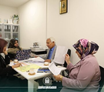 The President of Al-Zahraa University for Women Prof. Dr. Zainab Al-Mulla Al-Sultani, student Fatima Abbas Hassan from the College of Health and Medical Technologies - Department of Radiology and Ultrasound, winner of the monthly question award on reading, books and reading.